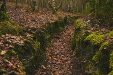 Heavily rain-eroded footpath FP218 when the wood was purchased.