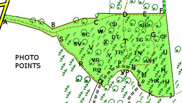 These fixed points in the wood have been selected so that changes over time can be monitored.